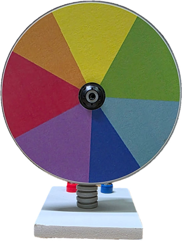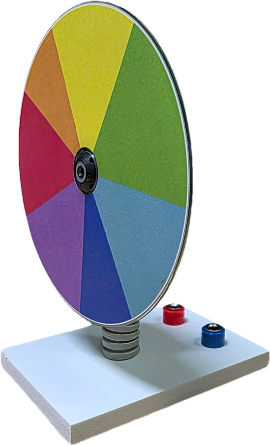 Принцип работы:Диск разделен на сектора цветов спектра. При быстром вращении диска происходит слияние цветов.