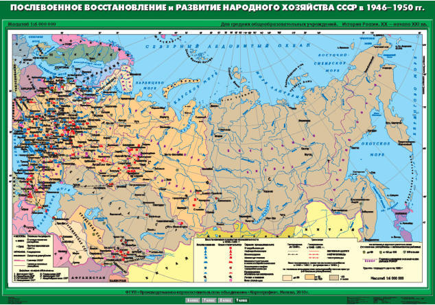 Карта "Послевоенное восстановление и развитие народного хозяйства СССР в 1946-1950 гг"