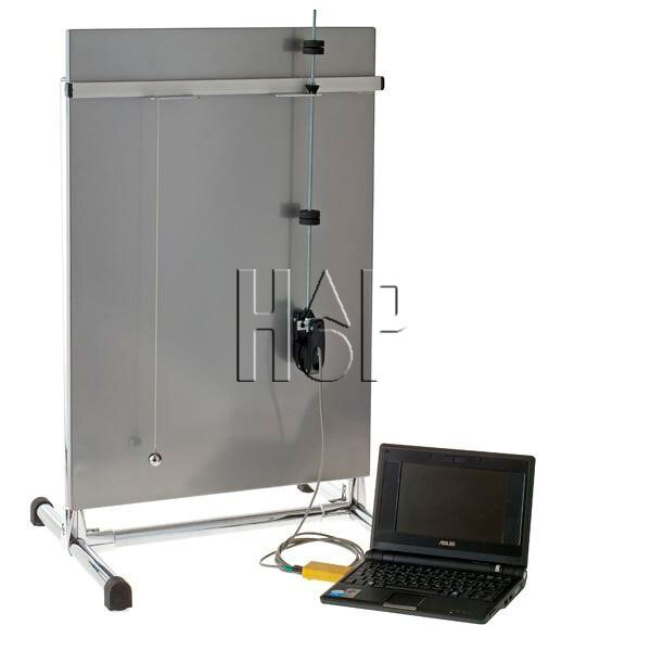 Программа работы с данными позволяет установить два маркера в точки, где происходило изменение состояния датчика, и определить интервал времени между этими событиями. За один период колебания оптоэлектрический датчик перекрывается 2 раза, и поскольку положение датчика может не совпадать с положением равновесия маятника, период колебания определяется по интервалу времени между соответствующими фронтами (передними или задними) ближайших четных или нечетных импульсов на экране.Что представляет собой устройство: В верхней части стенда имеются две пластины, одна из которых является опорной для призмы оборотного маятника, а другая имеет отверстие для фиксации нити. Маятники совершают колебания в плоскости, параллельной плоскости металлического стенда. Оптоэлектрический датчик, с помощью вмонтированных в него магнитов, фиксируется на металлическом стенде таким образом, чтобы маятник при колебаниях пересекал его оптическую ось. Показания оптоэлектрического датчика выводятся на экран компьютера в виде диаграммы, показывающей изменение состояния датчика (открыт/перекрыт) от времени.