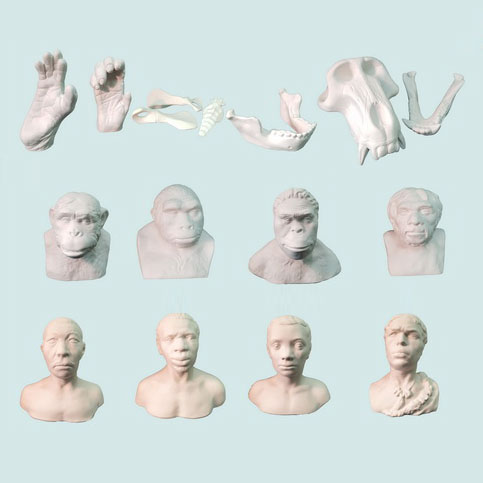Модели выполнены из гипса. Позволяет рассмотреть этапы эволюции человека, сходство и различия в анатомии человека и приматов, характерные морфологические черты рас человека.