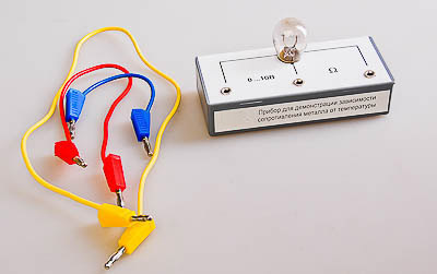 Прибор состоит из двухспиральной электрической лампы в патроне. Патрон закреплен на пластмассовой подставке. На подставке установлены униваресальные зажимы для подключения регулируемого источника тока и омметра. Для работы с прибором может использоваться источник питания ИПД-С или В-24.